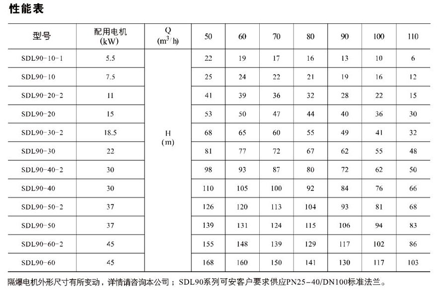 南元SDL90/SDLT90立式多級離心泵有不同的泵規格和不同級數,以滿足所需的流量和壓力。
