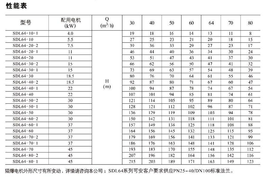 南元SDL64/SDLT64立式多級離心泵有不同的泵規格和不同級數,以滿足所需的流量和壓力。