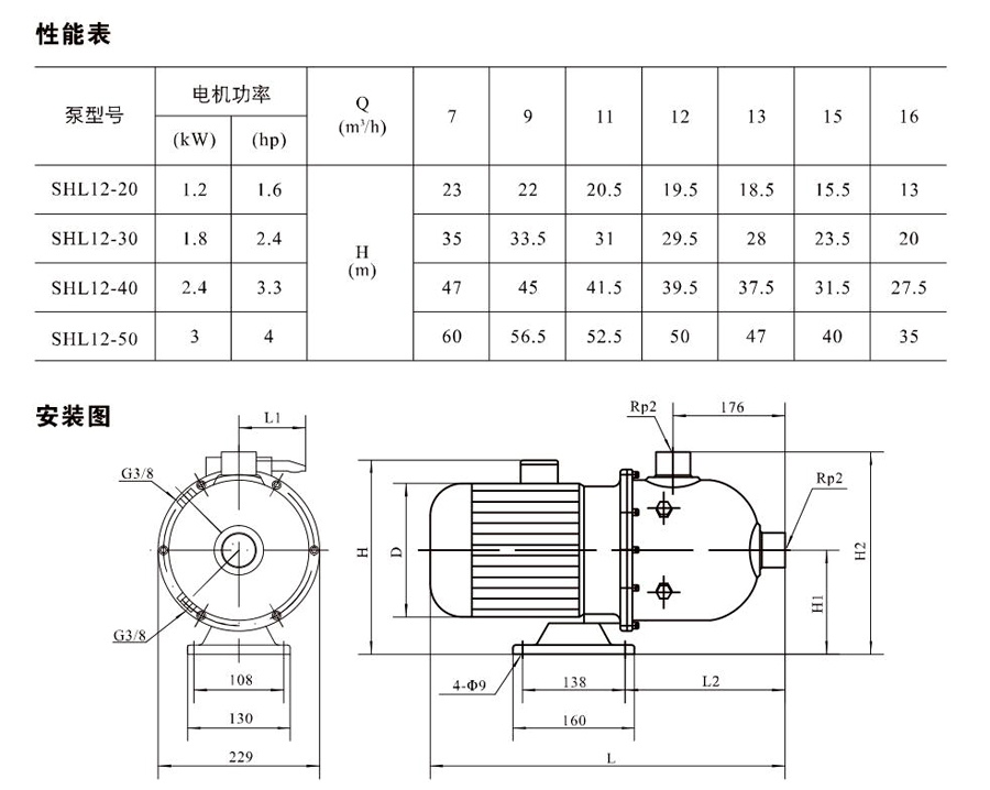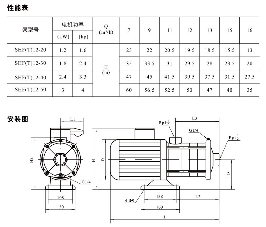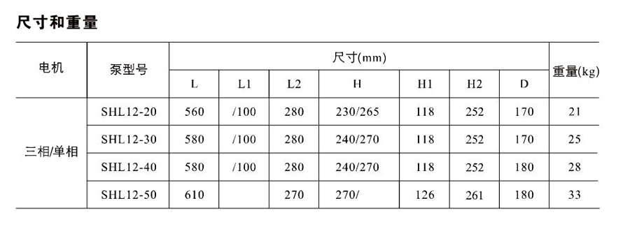SHL/SHF/SHFT12為臥式多級非自吸多級離心泵,配加長軸電機(jī)。緊湊式結(jié)構(gòu)使泵尺寸很小,軸向入口或徑向出口。