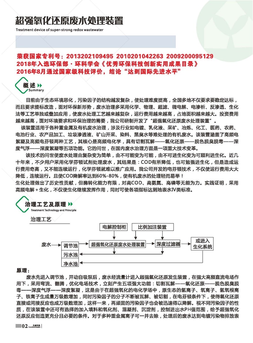 超強氧化還原廢水處理裝置(CYH法)處理各種有機廢水、各種重金屬廢水