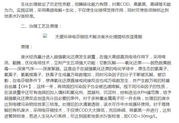 河南網轉載:天盛環保電芬頓技術解決廢水處理提標改造難題