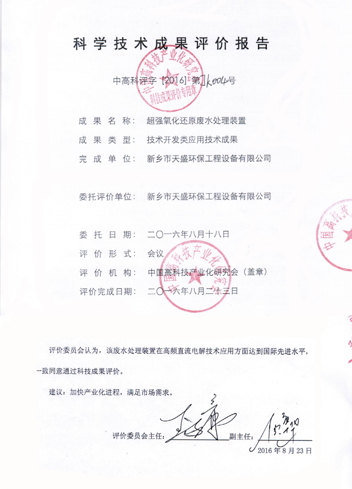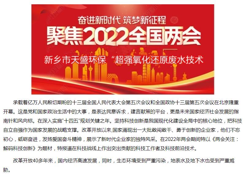 中國(guó)高新技術(shù)網(wǎng)發(fā)布:《關(guān)注:解碼科技創(chuàng)新》——新鄉(xiāng)市天盛環(huán)?!俺瑥?qiáng)氧化還原廢水處理技術(shù)”