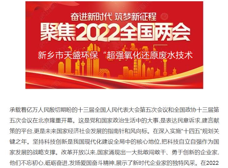中國高新技術網發布:《關注:解碼科技創新》——新鄉市天盛環保“超強氧化還原廢水處理技術”