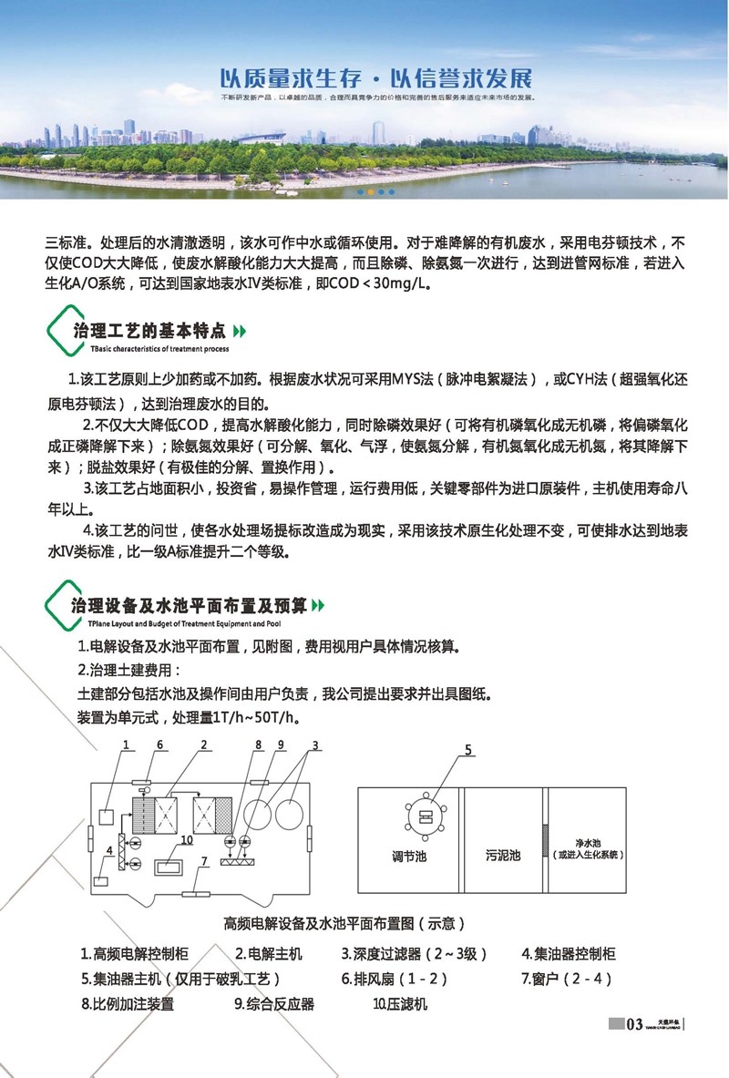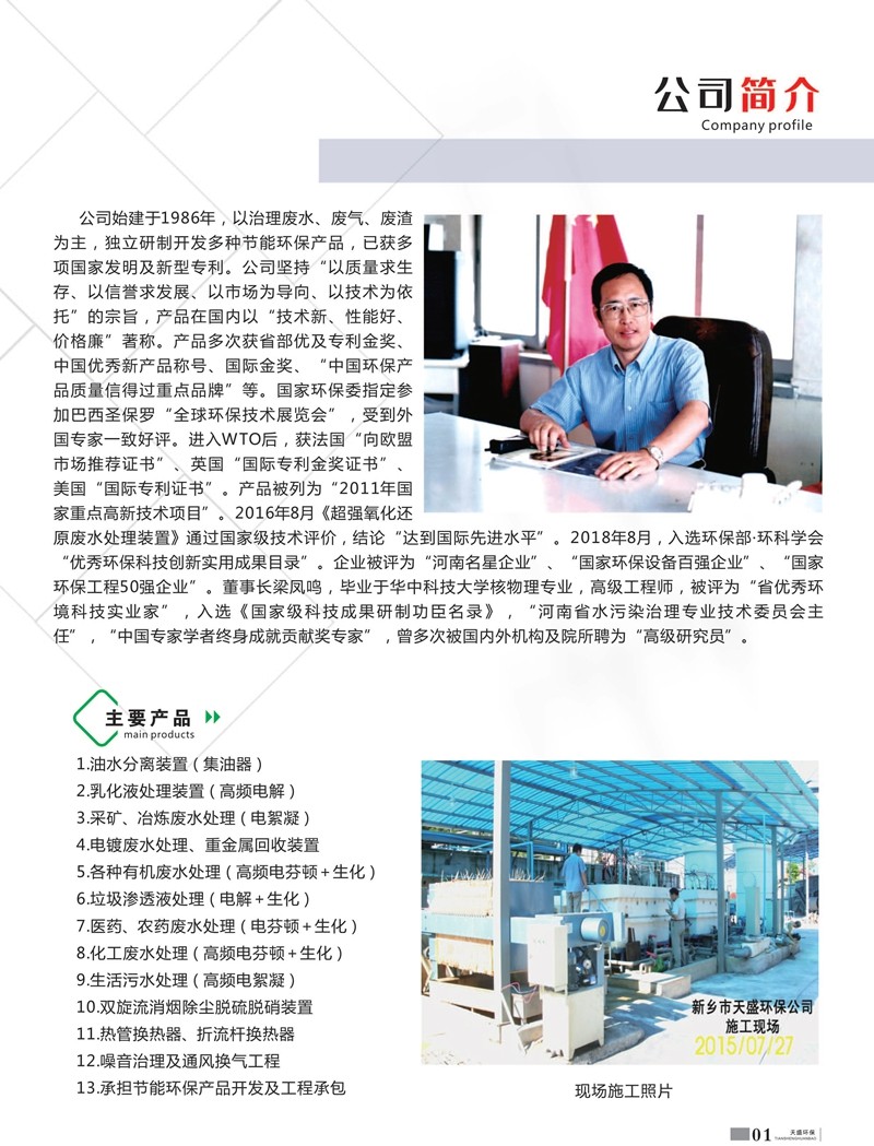 公司始建于1986年,以處理各種有機(jī)廢水、各種重金屬?gòu)U水為主,獨(dú)立研制開發(fā)多種節(jié)能環(huán)保產(chǎn)品,已獲多項(xiàng)國(guó)家發(fā)明及新型專利一種電化學(xué)廢水處理裝置 ZL 2013 2 0210949.5。公司堅(jiān)持“以質(zhì)量求生存、以信譽(yù)求發(fā)展、以市場(chǎng)為導(dǎo)向、以技術(shù)為依托”的宗旨。